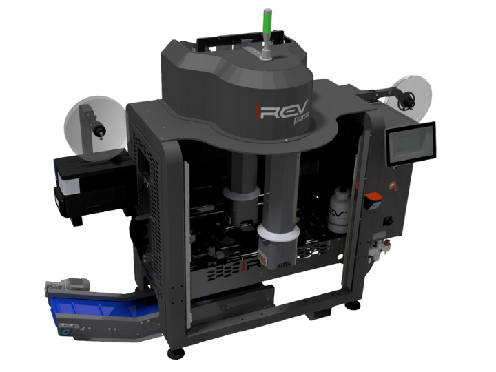 - La máquina, de hecho, está equipada con una impresora de transferencia térmica en grado de imprimir directamente sobre la etiqueta, en la parte interna o externa, y con componentes de alto nivel cualitativo y tecnológico: la amplia pantalla táctil consiente programar varias recetas de procesamiento, para un uso extremadamente simple. Además, gracias a los dos tubos porta-malla con cambio automático, Puma garantiza una elevada continuidad de producción.